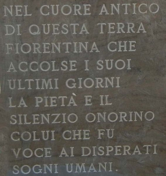 Sepolto inizialmente nel cimitero di S.Colombano, la salma del poeta è traslata nella Badia di Settimo nel 1942.