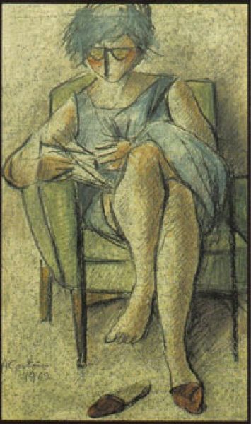 Anna che legge, 1962. tecnica-mista su carta, cm 49,8x35