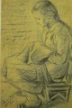 Serena che scrive, 1970. China su carta, cm. 47x33