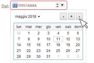 Cambiare mese agendo sulle frecce destra/sinistra